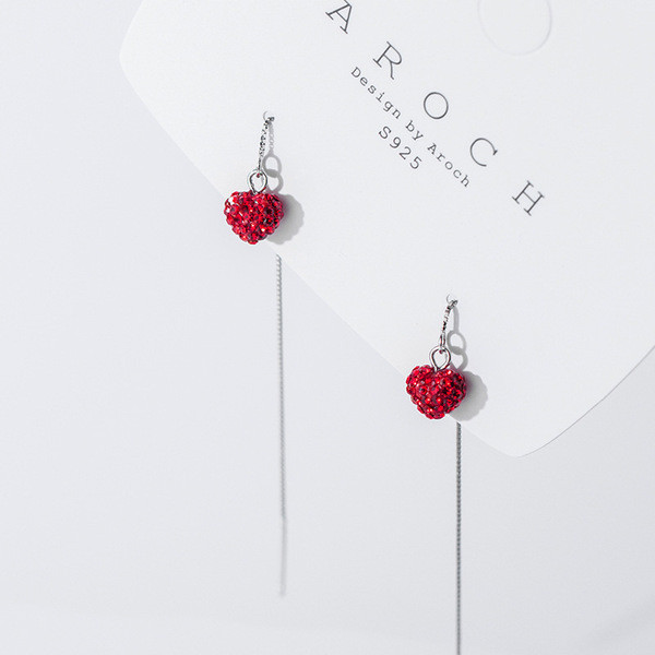 s925 sterling silver sweet string rhinestone geometric heart snakechain earrings
